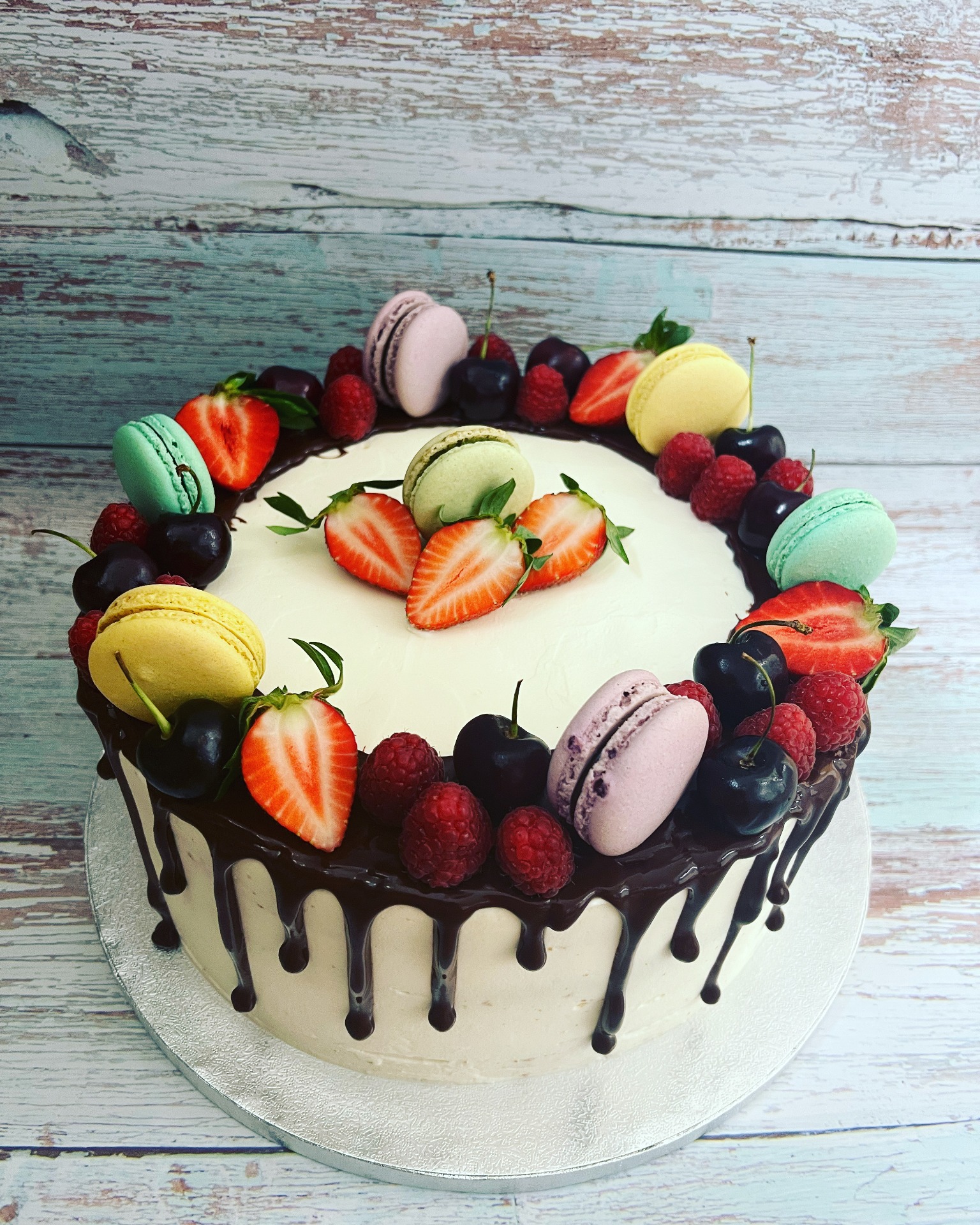 Na zdobení veškerých našich dortů používáme jen to nejkvalitnější, ať už se jedná o čerstvé ovoce, makronky naší výroby, čokoládové ozdoby, oříškové ozdoby, zápichy nebo zdobení luxury dortů, které si vytváříme sami.